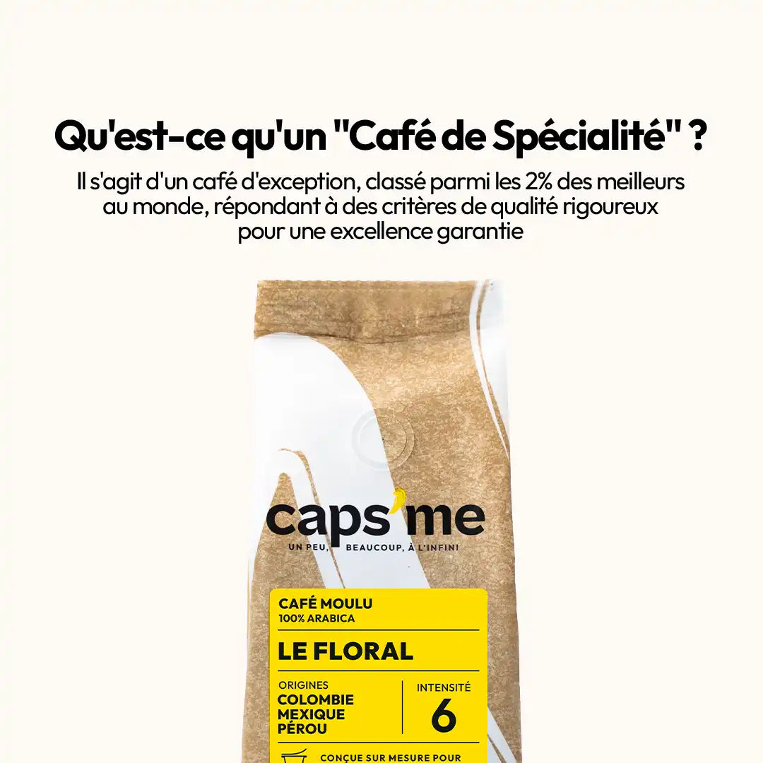 différence entre les cafés proposés par la concurrence et CAPS'ME : nous proposons un café torréfié en france pour garantir une fraicheur et des arômes intenses, la mouture du café est précisément adaptés aux capsules réutilisables pour vous garantir une bonne extraction, adpaté à la pression de votre machine à café Nespresso®. nous sélectionnons uniquement des cafés de spécialité c'est à dire des cafés qui répondent aux standards élevés de la Specialty Coffee Association (SCA).Nos cafés sont sélectionnés sur la base de critères stricts, incluant : l'odeur, arôme, arrière-goût, acidité, corps, équilibre, uniformité, pureté et bien d'autres aspects essentiels qui définissent un café de spécialité. Un score de 80 sur 100 est le minimum pour qu'un café soit considéré de spécialité. Cette approche garantit que chaque tasse de café Caps'Me offre une expérience gustative exceptionnelle.